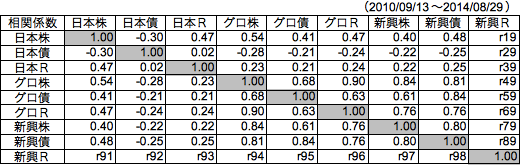 【新興国リート以外の相関係数テーブル】