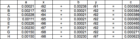 これはeMAXISの時系列データから求められます。求めたい変数をそれぞれr91,…,r98と置きます。