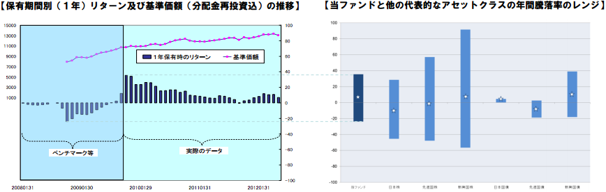 ・上記リターンの振幅レンジ(最大値〜最小値)を他の代表的なアセットクラスと比較