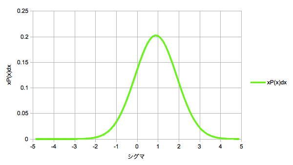 縦軸は言い換えれば「平均値への寄与率」です(規格化はしていません)。分布の中心がプラス側へシフトしていることが、「シグマ」の寄与がゼロに対して非対称であることが、平均値が中央値(ゼロシグマ)を超えることの証明だと考えられます。