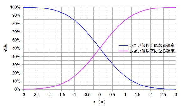 累積確率:F(a)=1-[1+erf(a/√2)]/2 ※erf(x):誤差関数