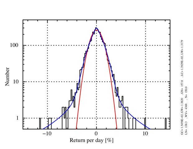 いずれにせよこのような関数型で記述可能な確率分布に従っていることが重要なので、日々の変動にドタバタしないでどっぷりと構えていたいものです。