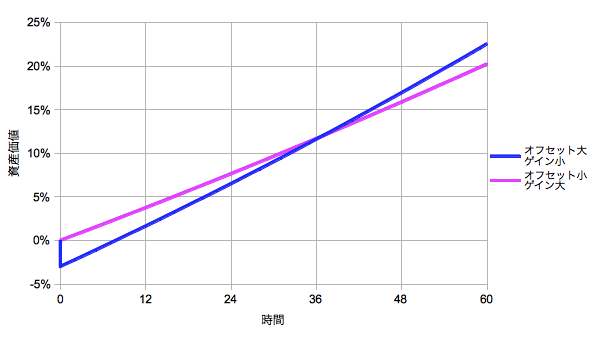 個人的に「ゲイン」とか「オフセット」という言葉をよく使います。仕事柄ものごとをゲインとオフセットに分けて考えることは少なくないのですが、特に長期投資においてもこの考え方は重要だと思っています。