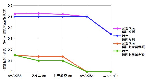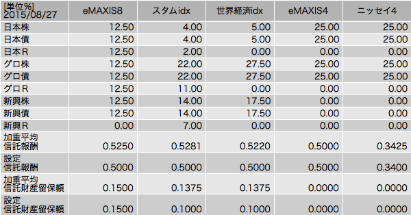 【単品のウェイト加重運用管理費用と設定運用管理費用(@2015/08/27)】