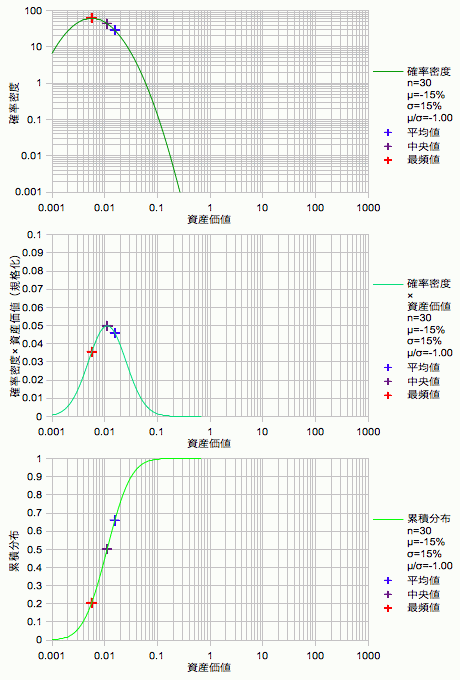 【ジフ版・リスクのリターン依存(n=30年、σ=15%、相乗平均=-15~15%)】