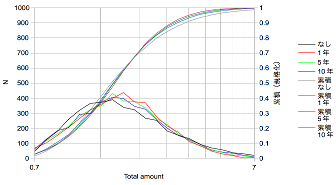 周期が短いほど分布の幅がシュリンクしていることからリスクの維持という目的が果たされていることが確認できます。